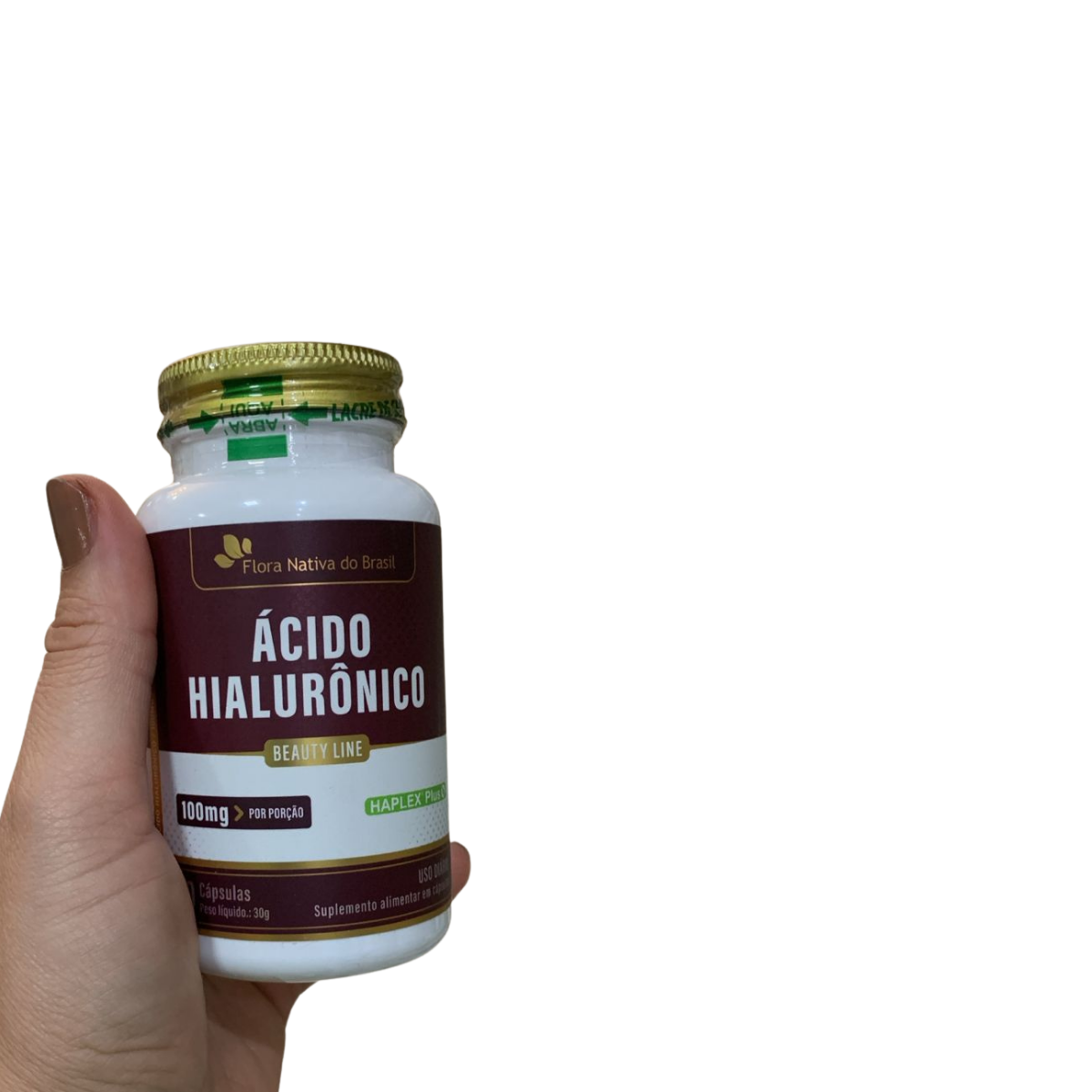 Suplemento de Ácido Hialurônico 100mg para pele hidratada e articulações saudáveis.